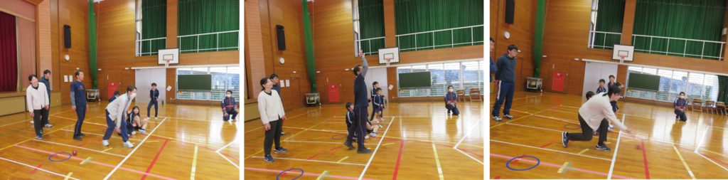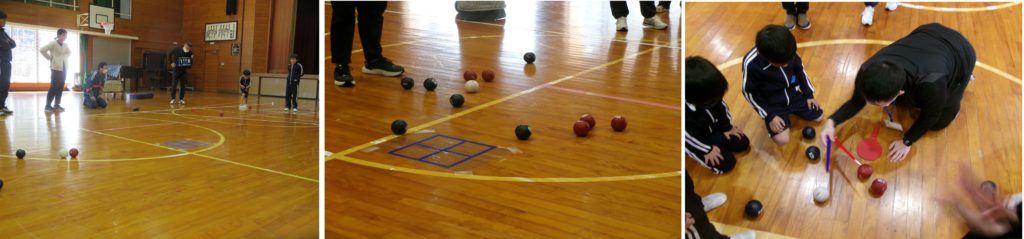 先生たちも体験しました。様々な投げ方を試してみましたが、力加減が難しく、思うような場所に投げることができません。あらためてパラリンピックに出場している選手の技術の高さを実感しました。短い時間でしたが、貴重な体験ができました。