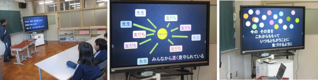 最後に「はあっていうゲーム」をしました。声と表情だけで相手の気持ちを読むゲームです。今回は「やばい」という言葉を用い、8つの状況から誰がどの様子の「やばい」をしているのかを考えました。様々な声や表情からどの状況下を推測するのですが、なかなか当たりませんでした。先生が、「声や表情だけでは自分の思いを伝えるのは難しい。だから、ちゃんと言葉にして相手に伝えることが大切だね。」とアドバイスされました。