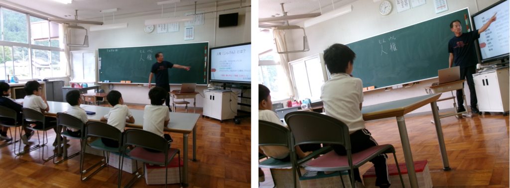 「自分の中で変えていきたいところは?」と尋ねられ、「負けず嫌いな性格」「おとなしいこと」などの言葉が出てきました。先生から、「他の言葉に変えてみようか。」と声をかけられました。「負けず嫌い→がんばり屋」「おとなしい→穏やかま性格」など、言い方を変えると、長所に変わることを知りました。「ほんまや、いいところになった!」と児童もうれしそうでした。