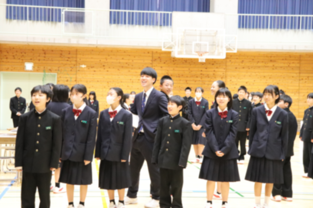 その後、3年生が1年生に校歌を教え、全校生徒で校歌を歌いました。