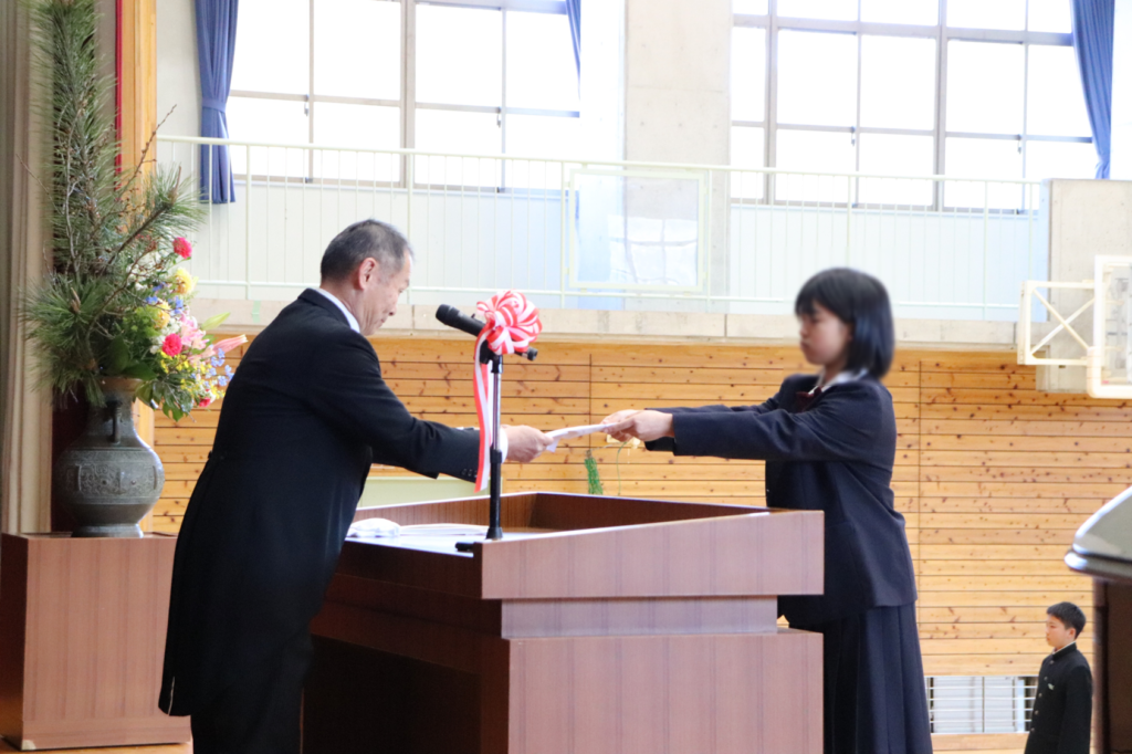 引き締まった雰囲気の中、呼名の返事や、答辞、卒業生からの歌などを通して、卒業生がさまざまな思いを伝えることができました。