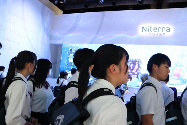 学年全体では「未来の都市」パビリオンへ入館し、その後班別行動へと移りました。