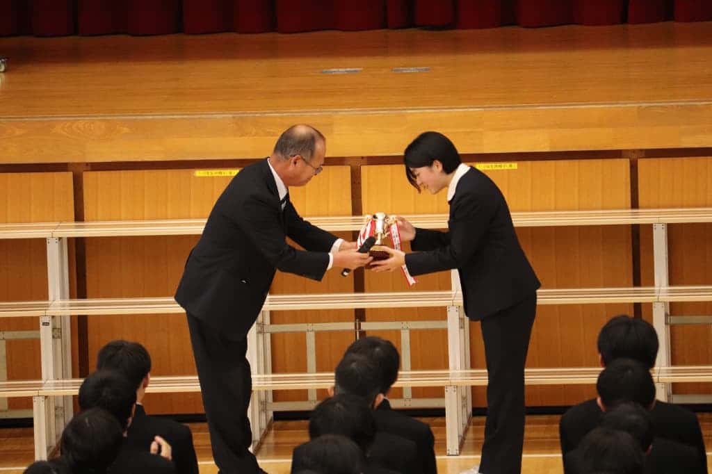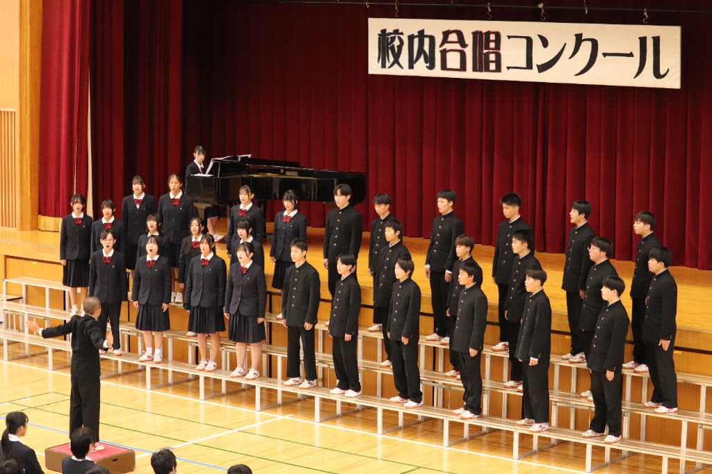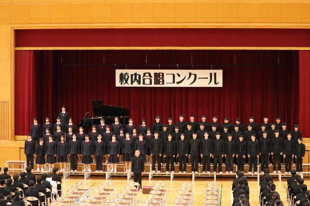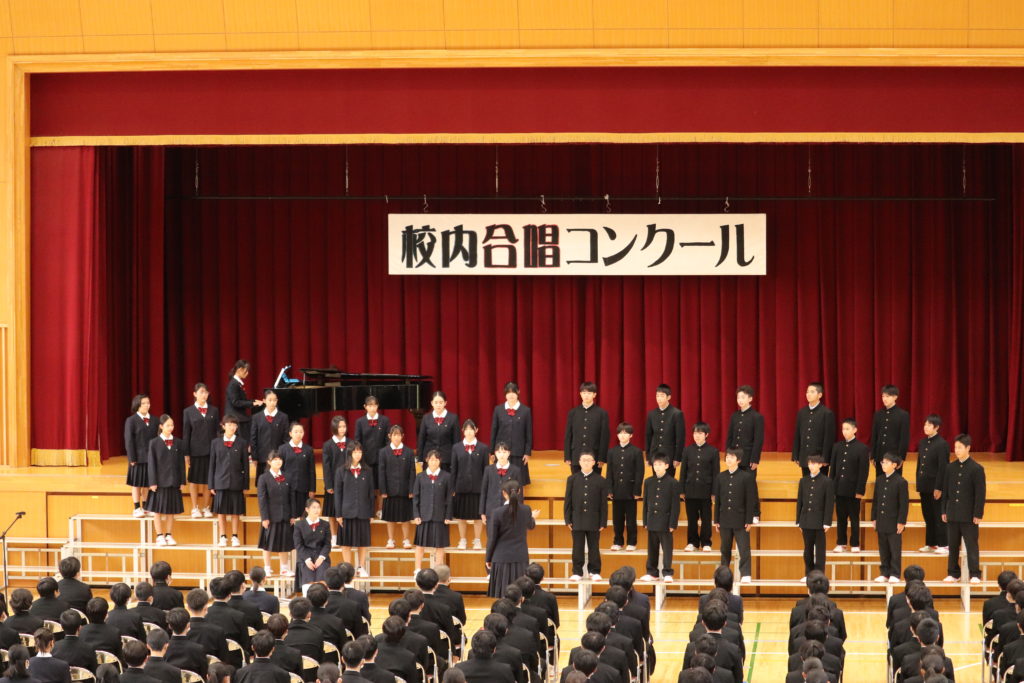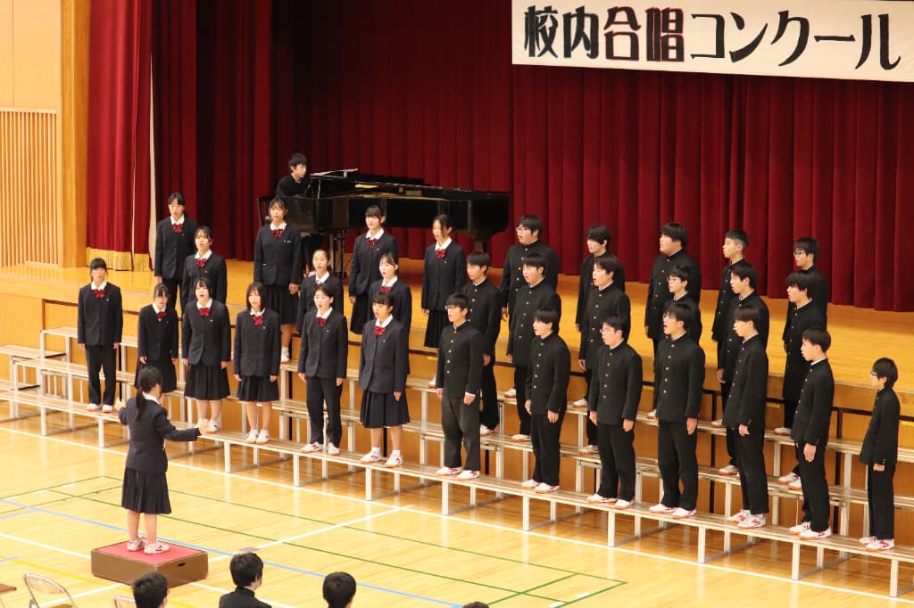 3年生最後の合唱コンクールは、審査の結果、1組が最優秀賞、2組が優秀賞を受賞しました。