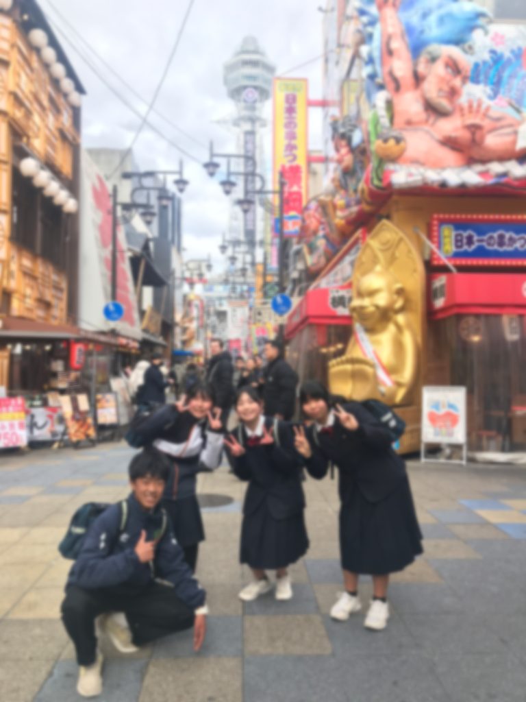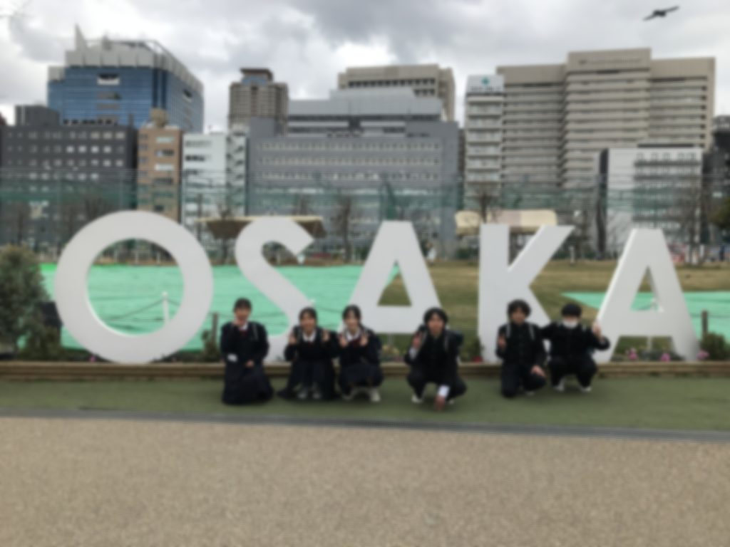 2年生で大阪に校外学習に行ってきました。ピース大阪では平和学習を行い、事前に折った千羽鶴も献鶴しました。班でクイズを解きながら、真剣に展示を見ている姿が印象的でした。午後からの班別研修では、事前に決めた行動計画にしたがって大阪のグルメを食べ、食レポ動画も撮りました。予定の集合時間に遅れそうになり、駅から大阪城まで走った班もありましたが、無事にすべての班が時間に間に合いました。班がバラバラにならずに楽しめた様子で、成長を感じました。今回学んだことを、これからの学校生活に生かしていってほしいと思います。