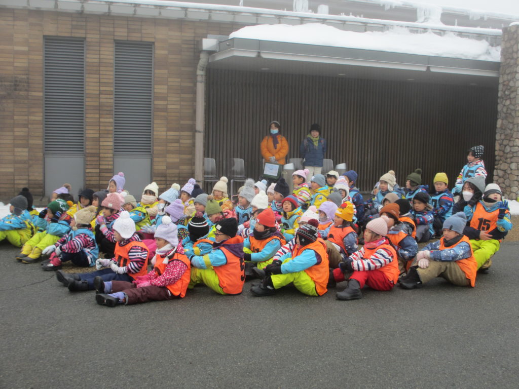 今日は楽しみにしていた、峰山高原リラクシアでの冬の自然体験の日。濃霧ではありましたが雨や雪が降ることなく、思い切りそりあそびやゆきあそびを楽しむことができました。また、今日は寺前小や長谷小の1年生との交流の場でもありました。あいさつをしたり、一緒にお話を聞いたりも、しっかりとできました。