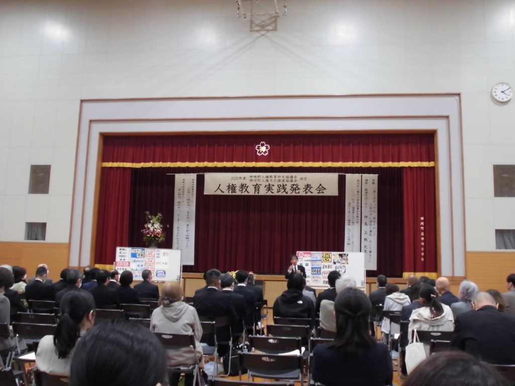 10/31(金)に神河町人権教育実践発表会が神崎小学校にて行われました。神崎幼稚園、神崎小学校の2年間にわたる人権教育への取り組みをたくさんのご来賓、学校関係者の皆様に見ていただきました。また、講演会では教育サポーターの仲島正教先生に「あーよかったな あなたがいて ~あの子に自信 勇気 そして夢を~」という演題でご講演をいただきました。ご自身の経験されたエピソードから子どもたちへひたむきに向かい合われていた姿に胸を打たれました。今後も益々の活躍をお祈りいたします。そして、神崎幼稚園、神崎小学校のこれからの発展を見守っていただけたら幸いです。みなさんどうぞよろしくお願いいたします。ありがとうございました。