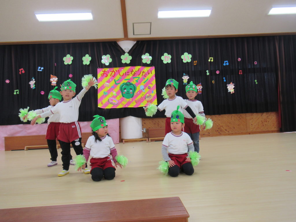 はい、ポ~ズ(^^♪  たんぽぽぐみの「おかしになりたいピーマン」