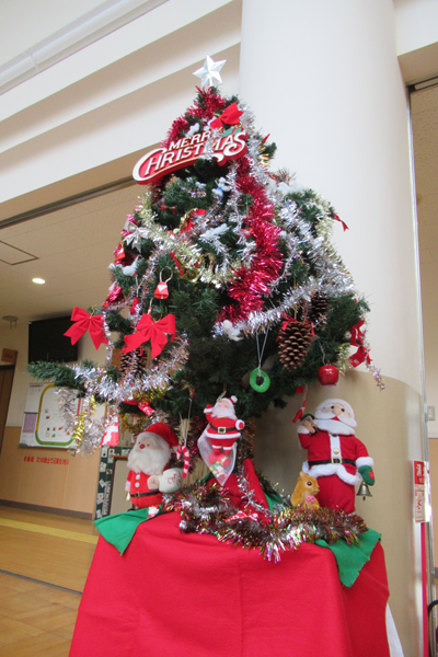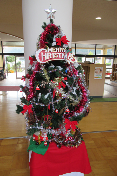 今年も、寺前小学校の1階ホールにクリスマスツリーが飾られました。このツリーは、毎年、ベルマークボランティアの方々が、ベルマークの集計作業が終わってから飾り付けをしてくださっています。このツリーを見ながら、子どもたちは今年のクリスマスプレゼントは何かなとワクワク気分を膨らましています。
