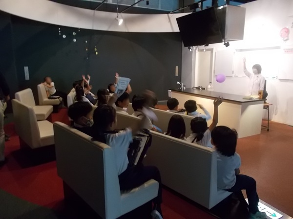 科学館での班別行動では、展示物をじっくり見たり、体験したりと夢中になっていました。サイエンスショーでは、空気の不思議について、みんな興味津々で目を輝かせながら実験を見ていました。
